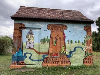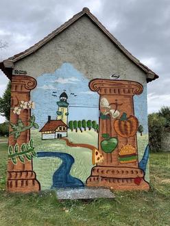 Sebastian Kneipp, der Pionier der ganzheitlichen Gesundheit, hat mit seinen „Fünf Säulen" einen bedeutenden Beitrag zur Förderung von Gesundheit und Wohlbefinden geleistet. Diese Säulen sind Wasseranwendungen, Heilkräuter, Bewegung, Ernährung und Balance. Sie bilden das Fundament einer gesunden Lebensweise, die auf Natürlichkeit und Nachhaltigkeit setzt. Die Umsetzung dieser Ideale in Form von Säulen an dem Häuschen ist ein guter Weg, um die Prinzipien Kneipps in unserer Gesellschaft präsenter zu machen. Auch die „Kneipp®-Grundschule Bad Schmiedeberg“ und die, sich daneben befindliche, Sekundarschule sollen von der künstlerischen Aufwertung des Elektrohäuschens profitieren, indem sie an jene Werte erinnert werden.