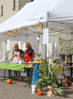 Am Samstag, den 30. September fand unser diesjähriges Erntedankfest rund um die Pretzscher Kirche statt. Den Auftakt bildete der Gottesdienst in der Kirche. Alle Kirchgänger konnten schon beim Hineingehen die vielen fleißigen Helfer bei den Vorbereitungen sehen. Bald füllte sich der Platz mit Besuchern, die sich die besten Plätze an den herbstlich geschmückten Tischen sichern wollten.