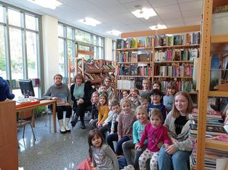 Bei ihrem gemeinsamen Besuch der Stadtbibliothek am 10.11.2023 stellte ich den "Wackelzähnen" und den "Überfliegern" aus der Kneipp-Kita "Storchennest" das Kinderbuch "Die Geschichte von Sankt Martin" von Dörte Beutler vor. Mit großem Interesse wurde der wahren Geschichte von Sankt Martin gelauscht, die wunderbar und stimmungsvoll illustriert ist. Viel Neues wurde dabei erfahren und so konnten die Kinder am nächsten Tag mit ihrem frisch erworbenen Wissen, ihrer Laterne und viel Freude am Martinsumzug teilnehmen.