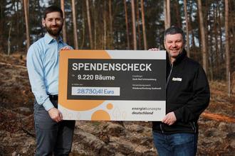 Symbolisch wurde dafür bei dem Termin auch ein Spendenscheck in Höhe von 28.730,41 Euro für die Kosten der insgesamt 9.220 zu pflanzenden Bäume übergeben.