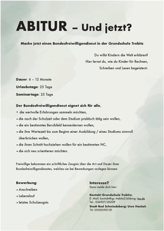 Mache jetzt einen Bundesfreiwilligendienst in der Grundschule Trebitz