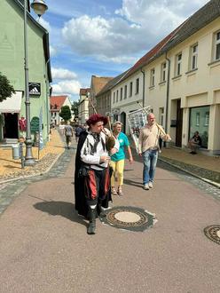 Gleich am nächsten Tag vertraten vier Mitglieder den Heimatverein beim Umzug des Margarethenfestes. Zusammen mit sechs anderen Vereinen vertraten wir mit Dudelsackmusik, Vereinsfahne und Handwagen und mit lautem „JUBEL“ unser Dorf. Wir bedanken uns bei Frau Redmer als Mitglied der Ortsgruppe Söllichau der Spindestuben Dübener Heide e.V. für die Organisation!