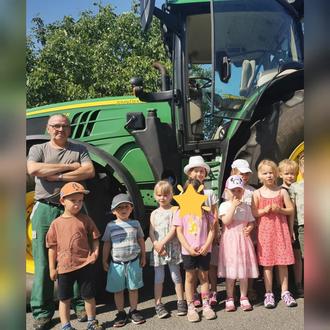 Am 26. Juli 2024 war in unserer Kita große Aufregung angesagt. Im Rahmen unseres Projekts zum Thema "Bauernhof" bekamen die Kinder besonderen Besuch: Traktorfahrer Maik Puhlmann aus der Agrargenossenschaft Ogkeln kam mit seinem beeindruckenden grünen Traktor vorbei.