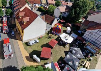 Ein weiteres Highlight war der Besuch der Freiwilligen Feuerwehren Bad Schmiedeberg & Korgau, die den Kindern spannende Einblicke in ihre Arbeit boten. Die Kleinen durften sogar selbst einmal in einem Feuerwehrauto sitzen, an einer Löschübung teilnehmen oder mit der Drehleiter einen Blick über den Festplatz wagen. Natürlich fehlte auch das beliebte Kinderschminken nicht, welches durch „Caro&Conny Creative“ organisiert wurde. Geduldig ließen sich die Kinder in bunte Schmetterlinge, mutige Tiger oder andere Fantasiefiguren verwandeln und trugen ihre Kunstwerke stolz durch das Fest. Wer dann noch genug Energie hatte, konnte die große Hüpfburg von „Hüpfburgen and more“ erobern.