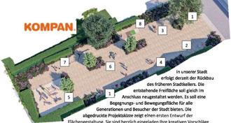 In unserer Stadt erfolgt derzeit der Rückbau des früheren Stadtkellers. Die entstehende Freifläche soll gleich im Anschluss neugestaltet werden. Es soll eine Begegnungs- und Bewegungsfläche für alle Generationen und Besucher der Stadt bieten. Die abgedruckte Projektskizze zeigt einen ersten Entwurf der Flächengestaltung. Sie sind herzlich eingeladen Ihre kreativen Vorschläge zur Flächengestaltung in den Prozess einfließen zu lassen. Das Projekt wird durch die Firma KOMPAN – Hersteller von Aktivitätsbereichen im Freien begleitet. Im Spätsommer 2025 habe ich die Freiflächengestaltung bei einem firmeneigenen Förderaufruf eingereicht und unser Vorhaben ist ausgewählt worden.