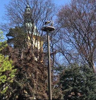 Die Störche haben ihr Nest belegt. Nun muss es nur noch etwas wärmer werden, damit sie diesmal in Bernstadt auch bleiben und hier ihre Jungen aufziehen.