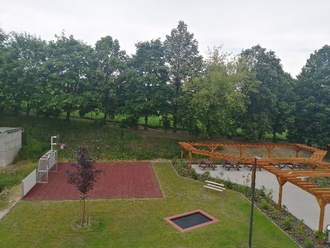 Der 2. Bauabschnitt der Neugestaltung der Außenanlagen an der Oberschule ‚Klaus Riedel‘ konnte am 1. Juni den Schülerinnen und Schülern zur Nutzung übergeben werden. Neben einem Bolzplatz entstanden ein Bodentrampolin, eine mit einer Pergola und Kletterpflanzen umgebene Fläche für Bänke und Tische sowie ein Fahrradunterstand.