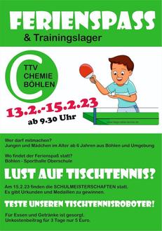 In den Winterferien findet in der neuen Sporthalle der Oberschule ein Ferienspaß und Tischtennistrainingslager für Aktive und Nichtaktive statt.