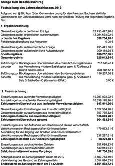 Beschluss über die Feststellung des Jahresabschlusses 2019 der Stadt Böhlen