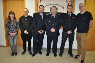v.l.n.r.: Haupt- und Ordnungsamtsleiterin Frau Geßner, Sachbearbeiter Brand- und Katastrophenschutz Herr Ziesler, 2. stellv. Stadtwehrleiter Herr Albrecht, Stadtwehrleiter Herr Kannecht, erster stellv. Stadtwehrleiter Herr Becker, erster stellv. Bürgermeister Herr Altmann