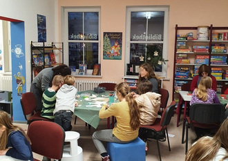 Die Bibliotheksmitarbeiterinnen Frau Hoffmann und Frau Adam haben sich in der Weihnachtszeit etwas Besonderes einfallen lassen. Am 14.12.2023 fand der erste Bastelnachmittag in der Stadtbibliothek statt und ca. 45 Teilnehmer, ob groß oder klein, folgten dieser Einladung. Gebastelt wurde im Spielebereich der Bibliothek mit alten Büchern passend zum Thema Weihnachten. Engelsanhänger, Wabenkugeln, verschiedene Sternvarianten und Weihnachtskarten wurden mit Buchpapier, Stempeln und Washitape angefertigt. Vor allem die aufwendigen Wabenkugeln fanden großen Anklang und alle Bastlerinnen und Bastler waren mit enormer Ruhe und Konzentration am Werk.