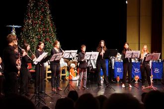 Eröffnet wurde die Weihnachtsgala mit einigen Worten von unserem Bürgermeister Herrn Berndt. Danach folgte der magische Moment, auf den alle Gäste bereits warteten, die schon das ein oder andere Mal bei der Weihnachtsgala waren: Es wurde dunkel im Saal, der Klang von Kirchenglocken war zu hören und der prächtig geschmückte Weihnachtsbaum auf der Bühne fing langsam an zu leuchten. Nun konnte das Programm beginnen. Sowohl die Böhlener Musikanten und die Akkordeongruppe, als auch der Kammerchor sangen und spielten Weihnachtsklassiker und stimmten besinnliche Töne an. Auch das Klarinettenensemble der Musik- und Kunstschule Landkreis Leipzig trug musikalisch zum Programm bei. Der Kinderhort „Pfiffikus“ führte ein Theaterstück nach dem Gedicht „Die Weihnachtsmaus“ von James Krüss auf. Mit verschiedenen Tänzen wurde die Weihnachtsgala abgerundet. Während der gesamten Weihnachtsgala übten wieder zwei Frauen des Klöppelzirkels auf der Bühne ihr Handwerk aus. Carolin Creutz-Moritz führte die Gäste durch die Gala und begab sich mit zwei Wichteln auf die Suche nach dem Weihnachtsmann, den sie letztendlich schlafend hinter dem Weihnachtsbaum entdeckten.