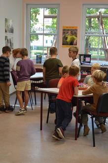 Die Hortkinder stöberten außerdem durch den Bestand der Bibliothek. Regale voll mit Büchern und DVDs wurden durchforstet, Gesellschaftsspiele wurden ausprobiert. Die Freude war riesig, als Kinder in den Regalen ihre Wunschmedien fanden. Zu so einem Anlass werden die Kinder immer gefragt, welches Buch sie sich in der Bibliothek wünschen würden. Die Mitarbeiterinnen nehmen diese Vorschläge dankend an und kaufen die Medien dann auch zum Teil für den Bestand der Bibliothek.