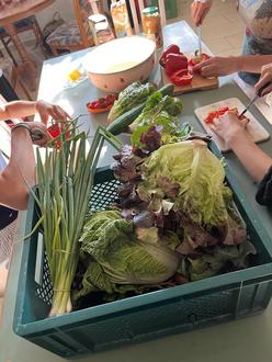 Im Ernährungsprojekt wurde gekocht und gebacken, aber auch darüber gesprochen, auf was geachtet werden sollte, um Lebensmittel nicht zu verschwenden. Mit einem Ausflug nach Pegau zu Familie Landgraf sowie zur Solidarischen Landwirtschaft KOLA nach Taucha hatten die Jugendlichen die Möglichkeit zu erleben, wie Lebensmittel produziert werden.
