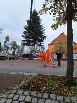 Der Bauhof der Stadt Böhlen war am 23.11.2023 wieder im Sinne von Weihnachten unterwegs. An diesem Tag wurden die Weihnachtsbäume vor dem Kulturhaus und auf dem Markt in unserer Stadt aufgestellt. Neben einem leuchtenden Stern auf der Baumspitze, kann man dieses Jahr auch Weihnachtskugeln am Baum bewundern. Diese wurden vom Bauhofleiter Herrn Wildensee gespendet. Die beiden Tannen spendierte die Familie Semper. Vielen, vielen Dank an beide Spender!