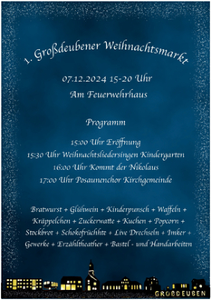 Kommt vorbei, bringt eure Freunde und Familien mit und lasst uns zusammen die Weihnachtszeit in Großdeuben einläuten!