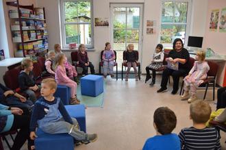 In der Stadtbibliothek Böhlen las die ehemalige Bürgermeisterin Maria Gangloff den Kindern der „Böhlener Knirpse“ aus ihrem mitgebrachten Märchenschatz vor. Geschichten wie „Hans und die Bohnenranke“ oder „Goldlöckchen und die drei Bären“ verzauberten die Kinder auf märchenhafte Weise.