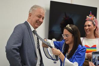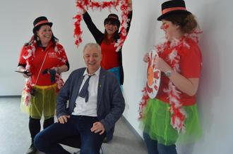 Gleich zwei Mal ging es unseren Männern in der Stadtverwaltung Böhlen an diesem Donnerstag an die Krawatte. Zunächst besuchten uns die Mädels des Großdeubener Karnevalsvereins seit 1965 e.V. Mit einem „Pleißa Helau“ begrüßten sie Bürgermeister Herrn Berndt, der sogleich an seine Krawatte glauben musste. Mit einem Gläschen Sekt wurde dann auf die kommenden Faschingstage angestoßen.