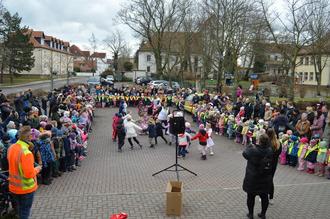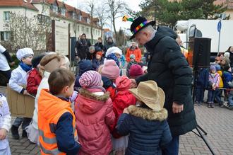 Zu guter Letzt wartete ein tolles Programm der „Böhlener Knirpse“ zum Rosenmontag vor dem Rathaus. Die Kinder begeisterten mit Liedern und Kostümen zu ihren Berufswünschen die zahlreichen Zuschauer. Belohnt wurden sie danach von Herrn Berndt mit einem Korb voller Süßigkeiten. Vielen Dank an die Kinder und die Erzieherinnen für diesen schönen Faschingsvormittag.