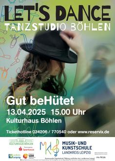 Unter dem Motto „Gut beHütet“ nehmen Sie die Tänzerinnen und Tänzer des Tanzstudios Böhlen der Musik- und Kunstschule Landkreis Land mit auf eine Reise durchs Leben. Begleiten Sie ein Mädchen dabei, erwachsen zu werden - mit allen Emotionen, schwierigen Herausforderungen und einschneidenden Ereignissen. Begleitet wird sie auf ihrem Weg von einem besonderen Kleidungsstück: dem Hut. Diesen bekommt sie von keinem geringeren als dem Hutmacher!