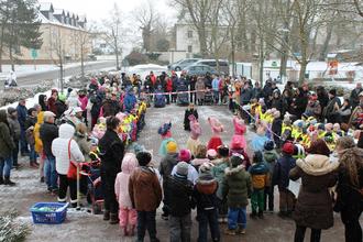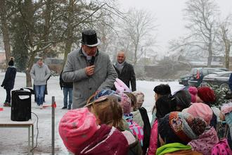 Der Wettergott meinte es am 16.02.2026 nicht so gut mit unseren „Böhlener Knirpsen“, doch die ließen sich nicht beirren und präsentierten uns zum Rosenmontag ein tierisches Programm vor dem Rathaus Böhlen. Sie trotzten dem Schnee und der eisigen Kälte, in dem sie sich ordentlich warm tanzten. Auch die Zuschauer waren begeistert vom Programm der Vorschulkinder. Alle tanzten zusammen „oben gute Laune, unten gute Laune, vorne gute Laune, hinten gute Laune, rechts gute Laune, links gute Laune“ und schon war das Winterwetter vergessen.