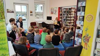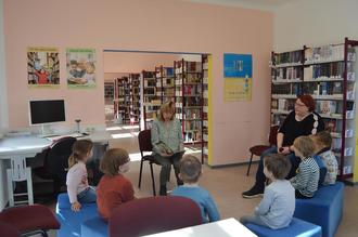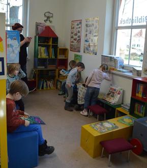 Frau Adam und Frau Kannecht, die beiden Bibliotheksmitarbeiterinnen, freuen sich immersehr, wenn interessierte Kindergruppen die Stadtbibliothek besuchen und lesen natürlich auch immer gerne etwas vor.