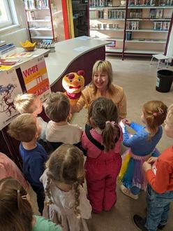 Zunächst kam am 13.03. eine Kita-Gruppe der „Böhlener Knirpse“ zu Besuch und wurde vom Bücherwurm begrüßt. Der Bücherwurm und die Kinder lauschten gespannt einer Ostergeschichte. Natürlich wurden auch ein paar Ostereier in der Bibliothek versteckt, die die Kinder im Anschluss daran suchen durften. Als Dankeschön für diesen schönen Vormittag in der Bibliothek, bekamen die beiden Bibliotheksmitarbeiterinnen einen Hasentanz aufgeführt und ein kleines Ostergeschenk.