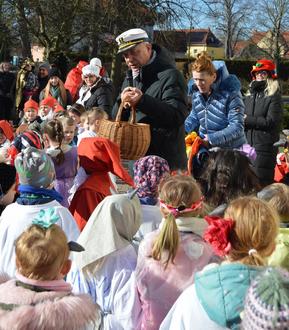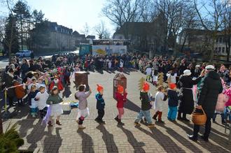 So bunt und lustig ging es am Montag vor dem Rathaus weiter. Die Vorschulkinder der „Böhlener Knirpse“ entführten uns ins Märchenland. Die zahlreich erschienen Zuschauer waren begeistert von den Tänzen, Liedern und Geschichten. Bei strahlendem Sonnenschein brachte das Programm gleich noch viel mehr Spaß. Mit einem gut gefüllten Korb voller Süßigkeiten wurden alle Kinder der „Böhlener Knirpse“ vom Bürgermeister Herrn Berndt zum Schluss noch überrascht. Wir bedanken uns wieder einmal sehr bei den Vorschulkindern und den Erzieherinnen Frau Loth, Frau Baumdick und Frau Jasch für diese schöne Vorführung. Es hat allen sichtlich viel Spaß bereitet.
