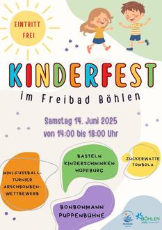 am 14.06.2025 ist es wieder soweit, wir begrüßen alle zu unserem Kinderfest. Im Freibad Böhlen wartet von 14:00 bis 18:00 Uhr wieder eine Menge Spiel und Spaß auf euch.