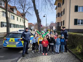 Die sachsenweite Aktion „Blitz for Kids“ startete in Böhlen am 02.04.2025. Alle drei 1. Klassen durften an diesem Tag den Autofahrern grüne und gelbe Karten zeigen. Zusammen mit unserem Bürgerpolizisten Herrn Hendriock, dem Frohburger Bürgerpolizisten, Herrn Petzsche, und dem Mitarbeiter des Ordnungsamtes, Herrn Ziesler, stellten sich die Kinder gegenüber dem Rathaus auf und laserten Autofahrer. Mit einer grünen Karte bedankten sich die Schüler für diejenigen, die sich vorbildlich im Straßenverkehr verhalten haben und angemessen gefahren sind. Eine gelbe Karte sahen alle, die zu schnell unterwegs waren.