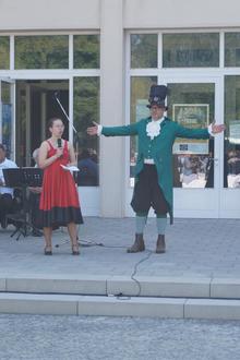 Nach der Begrüßung des Bürgermeisters Herrn Berndt, folgte das obligatorische Maibaumsetzen durch den Bauhof der Stadt Böhlen. Im Anschluss daran eröffnete das Blasorchester das Bühnenprogramm des Kulturvereins Böhlen e.V. in Zusammenarbeit mit der Musik- und Kunstschule Landkreis Leipzig. Annalena Ilte (stellvertretende Vorsitzende des Kulturvereins Böhlen) und der Hutmacher als Überraschungsgast führten durch das Programm, bei dem die Tänzerinnen und Tänzer abwechselnd mit dem Blasorchester auftraten. Nachmittags entführte uns dann die Happy-Junior-Band in die Welt der Film-, Fernseh- und Popmusik.
