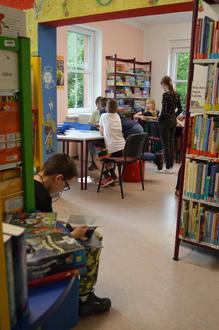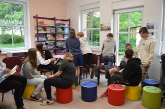 So z.B. die Anordnung in den Regalen und was die Farben auf den einzelnen Buchrücken zu bedeuten haben. Im Anschluss an die Bibliotheksführung hatten die Schülerinnen und Schüler auch noch ausgiebig Zeit, um sich in aller Ruhe einmal selbst umzusehen, ein Buch anzulesen oder in gemütlicher Runde ein Gesellschaftsspiel zu spielen.