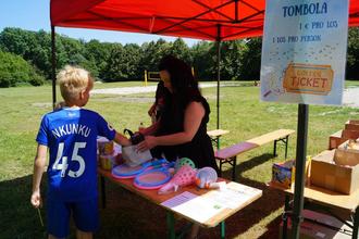Am Bastelstand der „Pfiffikus“- Hortnerinnen konnte man Traumfänger aus CD-Rohlingen basteln, oder sich mit bunten Tattoos und Glitzersteinen den Arm verschönern lassen. Frau Hinz vom Zirkel Bildende Künste schminkte den Kindern tolle Motive ins Gesicht und auf der Hüpfburg des KGV „Am Streitteich“, die uns dankenswerterweise kostenfrei zur Verfügung gestellt wurde, konnten sich alle so richtig schön auspowern. Wem das nicht genug war, der versuchte sein Glück bei der Tombola. Zwei Hauptpreise gab es. Das waren Saisonkarten, welche die Schwimm- und Rettungsschule Leitloff gesponsert hat – vielen Dank dafür! Alle, die nicht die glücklichen Gewinner waren, brauchten nicht traurig sein. Jedes Los gewann bei der Tombola. Möglich gemacht hat unter anderem das Sponsoring der ESW Projekt GmbH. Herzlichen Dank an Familie Schmidt!