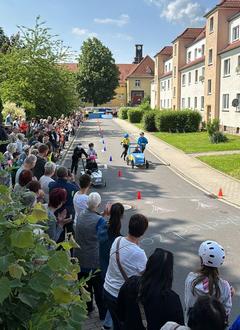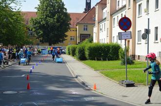 Als es am 07.06.2024 „Auf die Plätze – fertig – los!“ hieß, war die Aufregung bei den Grundschülern riesig! An diesem Tag startete jede Klasse von Klassenstufe eins bis vier der Grundschule „Pfiffikus“ mit ihrer eigenen Seifenkiste ins Rennen. Mit viel Mühe wurden die Rennautos gestaltet - eines war schöner als das andere. Und die Kinder präsentierten ihre Fahrzeuge mit Stolz. Alle waren mit Ehrgeiz voll bei der Sache. Es war für alle Kinder ein tolles Erlebnis, welches großen Teamgeist unter den einzelnen Gruppen hervorbrachte. Das Rennen war super fair und letztendlich waren alle Sieger der Herzen. Eine Menge Unterstützung hatten die Kinder auch sicher. Die gesamte Fahrstrecke entlang feuerten die Eltern ihre Kinder an und fieberten bei dem Rennen mit.