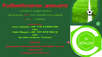 Du kannst uns auch anschreiben unter kontakt@svchemieboehlen.com oder einen der anderen Jugendtrainer ansprechen.