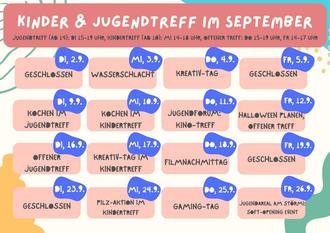 Die Übersicht unserer Öffnungszeiten und Angebote für den September und unser Herbstferienprogramm findet ihr hier im Amtsblatt auf unserer Instagram-Seite oder in unserem WhatsApp-Kanal.