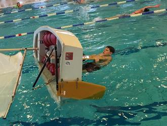 Des Weiteren trainierten wir Kopfsprünge, das Brustschwimmen und Kraulen sowie das Tauchen mit und ohne Schwimmweste. Am Beckenrand und auch im Wasser wurden verschiedene Knotenübungen durchgeführt, um im Ernstfall schnell reagieren zu können.