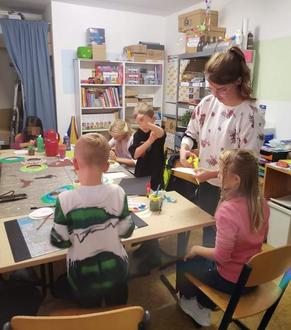 Wir hatten sogar Besuch aus Norwegen zu diesem kreativen Angebot für Kinder, was auch der Oma Spaß bereitet hat.
