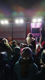 Es folgten viele Gäste unserer Einladung, was uns sehr freute. Um 18 Uhr schaute der Weihnachtsmann, welcher mit der Feuerwehr angereist war, auf dem Adventsmarkt vorbei und beschenkte die anwesenden Kinder mit Kleinigkeiten.