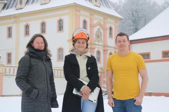 Zwei der vier Mitarbeitenden des Kompetenzzentrums Oberlausitzer Streuobstwiesen (Mitte: Julia Sikora, Projektmanagerin Oberlausitz-Stiftung und geprüfte Obstbaumwartin; rechts: Dr. Peter Decker, Projektmanager Oberlausitz-Stiftung) mit Susann Koppelt von der Unteren Naturschutzbehörde des Landkreises Görlitz (Foto: IBZ St. Marienthal)