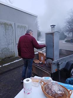 Dank vieler fleißiger Helfer konnten sich alle Besucher und Gäste am Winterfeuer aufwärmen und geräucherten Fisch, Soljanka, Bratwurst und andere Leckereien schmecken lassen.