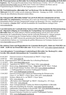 Auswahl geplanter Veranstaltungen Landschaftspark Bärwalder See/ Boxberg/O.L. (ohne Gewähr, bitte aktuelle Informationen der Veranstalter beachten!)