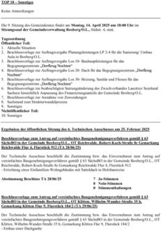 | Abstimmung Beschluss TA 29/06/25 | 7 Ja-Stimmen |