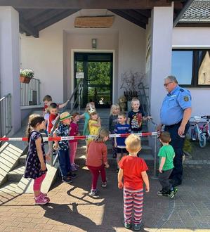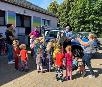 Gleichzeitig konnte Bürgerpolizist Matthias Reißmann die Kinder am Kindertag erfreuen und sich, seine Arbeit und seine Ausrüstung vorstellen. Ein großer Spaß und eine gelungene Überraschung.
