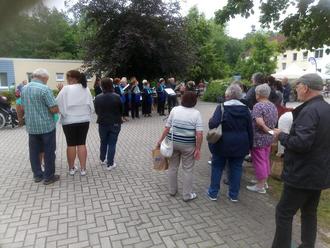 Es ging bei strahlenden Sonnenschein zur Gedenkstätte Tzschelln über Sprey zurück nach Bärwalde.