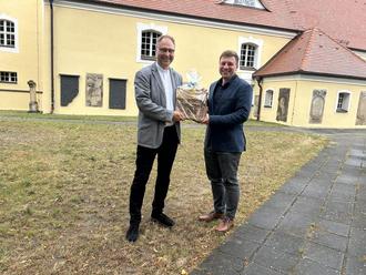 Als Zeichen unserer Wertschätzung überreichte Bürgermeister Hendryk Balko eine Holztafel mit der Gravur der Klittener Kirche.