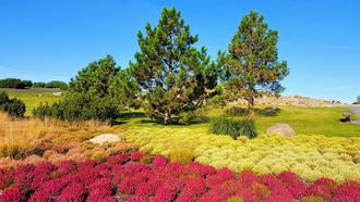 Die Landschaft strahlt Ruhe aus und lädt zum Spazieren ein. Im September zeigen u.a. Anemonen, Astern, Fuchsien und Sonnenhut ihre Blüten. Besonders attraktiv sind jetzt auch viele Gräser – und die Herbstfärbung der Stauden und Gehölze. Besuchen sie deshalb unbedingt unseren Spätsommer- und Steppenbereich! Natürlich ist im Heidemonat September unsere Sommerheide mit über 100 verschiedenen Sorten besonders attraktiv anzusehen.