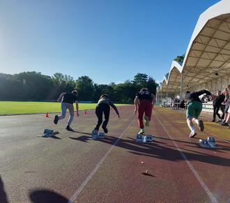 Im Stadion des Friedens Braunsbedra fanden die rund 240 Kids im Alter von 10 bis 16 Jahren an dem besagten Freitagvormittag ideale Bedingungen. Neben der hervorragenden Ausstattung des Sportgeländes gesellte sich auch noch ein vorbildliches Wetter für Outdoor-Veranstaltungen. Um den Teilnehmenden das Erlangen des Fitnessordens in vielfältiger Art und Weise zu ermöglichen, erhielt die Lehrerschaft tatkräftige Unterstützung vom KreisSportBund Saalekreis und den Leichtathleten des SV Braunsbedra. So konnten die Schülerinnen und Schüler im 800m-Lauf, Ballwurf, Hochsprung, Kugelstoßen, Seilspringen, Sprint, Standweitsprung und Weitsprung ihre Fähigkeiten bestens unter Beweis stellen.
