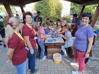 Dafür fand sich ein Vorbereitungsteam bestehend aus Eltern, Mitarbeitern und Mitarbeiterinnen aus Kita, Schule und Bibliothek, Sportlern aus Vereinen und Verwaltungsmitarbeitern zusammen. Zunächst wurde diskutiert ob überhaupt und wenn ja wie ein Familienfest anlässlich des 10-jährigen Jubiläums der Bildungsstadt Braunsbedra gefeiert werden sollte. Nachdem man sich darüber einig war, wurden Verantwortlichkeiten, Rahmenbedingungen und Abläufe festgelegt. Kleine und große Arbeitstreffen und viele Zwischenabsprachen ergaben dann ein immer konkreter werdendes Programm. Die über das Vorbereitungsteam angefragten Vereine, Kitas, Schulen, die Bibliothek und die Feuerwehr, das Kinder- und Jugendzentrum und Mitarbeitende der Stadtverwaltung brachten sich dann für den Festtag mit tollen Ideen ein. So konnten zum Beispiel erstmals Kinder mit einem Segelboot über den Schulhof der Lessing-Grundschule fahren. Alpakas und Ponys grasten in der Kita Steppke und freuten sich über Streicheleinheiten. Eine Vielzahl an Sport und Spielmöglichkeiten wurde ausprobiert und auch Denksport war angesagt (Schach). Die Kitas übertrafen sich selbst mit tollen Bastel-, Schmink- und Tatoo-Ständen. Wer eine Pause brauchte, genoss den selbst gebackenen Kuchen der Schüler der Sekundarschule mit einer Tasse Kaffee oder einem leckeren selbstgemachte Smoothie der KJUBB-Kids. Auch Freunde des Puppentheaters kamen auf Ihre Kosten. Das Gastspiel „Hase und Igel“ vom Erfreulichen Theater Erfurt beglückte kleine und große Leute. Der Liedermacher Jürgen Denkewitz sorgte inmitten der vielfältigen Angebote für lustige musikalische Einlagen.