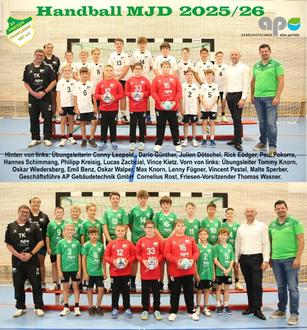 Dank der großzügigen Unterstützung konnten wir unsere Männliche Jugend D (MJD) mit zwei neuen Trikotsätzen ausstatten. Die Jungs sind begeistert – nicht nur vom frischen Look, sondern auch vom neuen Teamgefühl, das mit den neuen Trikots auf dem Spielfeld spürbar ist.